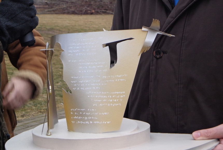 Darbs pie paša pieminekļa ritēja kopš šā gada sākuma. Tā izgatavošanai izmantoti dažādu metālu sakausējumi, kas saules gaismā radīs interesantu vizuālo efektu.