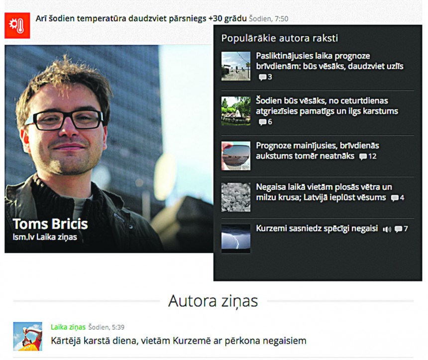 – Es esmu priecīgs un pagodināts, ja manas ziņas ir kā pirmās, bet objektīvi tas nav pareizi. BBC, CNN ikdienā laika ziņas ar uguni nesameklēsi ziņu lentē!