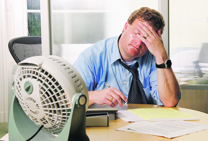 Uz ielas, būvlaukumos, tīrumos cepina saule, daudzos birojos valda smacējošs karstums, bet tikai neliela daļa uzņēmēju saīsinājuši darba stundas vai atļauj saviem darbiniekiem strādāt attālināti – no mājām.