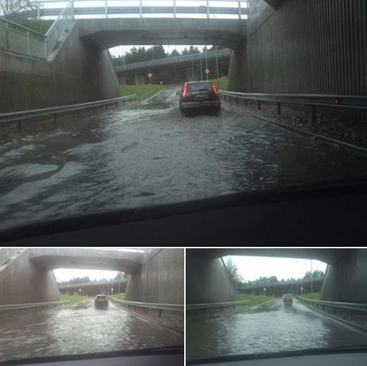 Kā liecina vairāki ieraksti un fotoattēli sociālajos tīklos, tad applūstošas brauktuves ir ne vien Krasta ielas un Salu tilta problēma, bet arī "superdārgā" Dienvidu tilta posts.