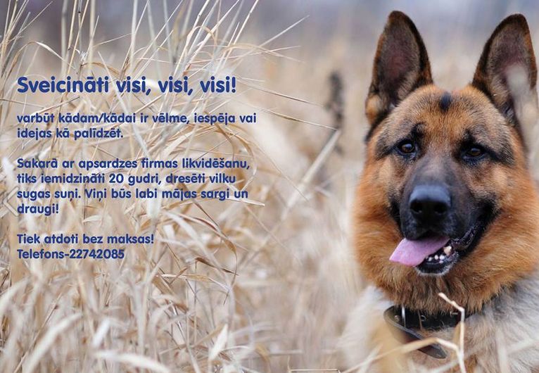 Sociālajos tīkos sācis klejot sludinājums, kas neatstās vienaldzīgu nevienu dzīvnieku draugu. Facebook tīklā ir atrodams paziņojums par to, ka, sakarā ar apsardzes firmas likvidēšanu, tiek plānots nogalināt 20 gudrus, skolotus suņus.