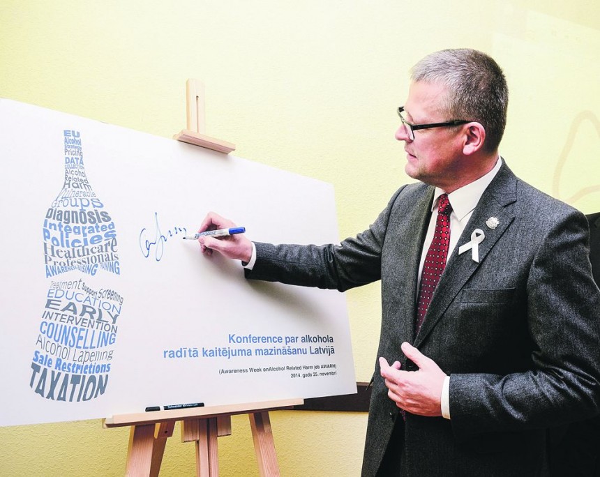 Pēc tam, kad valdībā šonedēļ izgāzās iecere uzlikt alkoholam jaunus reklāmas grožus, ārsti sarīkoja konferenci Par alkohola radītā kaitējuma mazināšanu Latvijā. Viņi raizējas par pļēguriem, kas ik pārdienas tiek ievesti stacionāros galējas intoksikācijas stāvoklī. Par bērniem, kam pirmo šļuku kā likums ierāda vecāki. Par sievietēm, kas gadiem ilgi katru dienu dzer «tikai vienu vīna glāzi», bet patiesībā vismaz divas, turklāt šo paradumu nemaina, arī esot gaidībās. Tad vēl atsevišķa dzērāju kategorija ir uzņēmēji, kuri dzer, jo «bizness ar krieviem taču jātaisa». Ir gudrinieki, kas, noticējuši melīgām reklāmām, mēģina glābt savas aknas ar brīnumainām pārtikas piedevām. Taču tās nevis palīdz aknām, bet uzliek papildu slodzi.