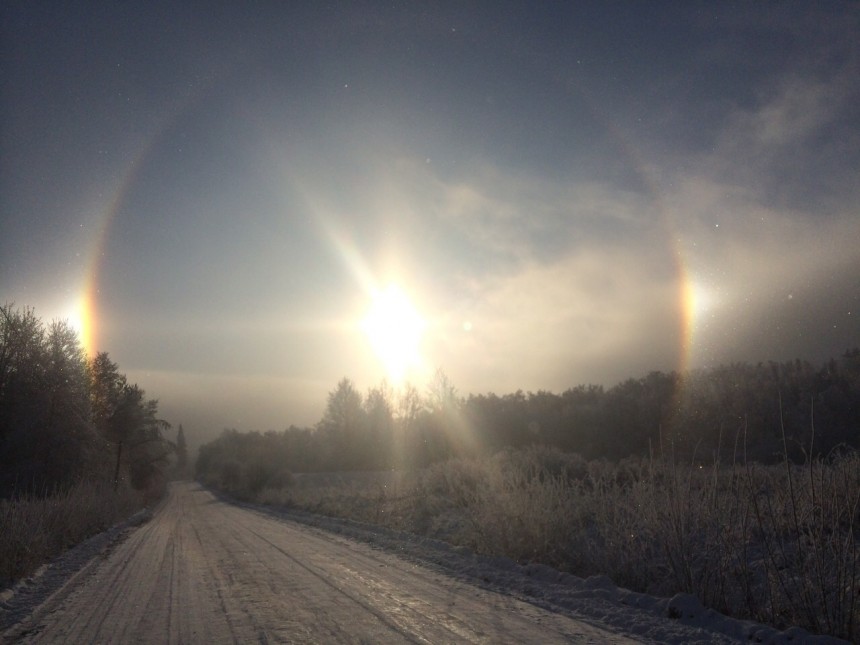 Parādību izraisa ledus kristāliņi spalvu mākoņos piecu līdz desmit kilometru augstumā.