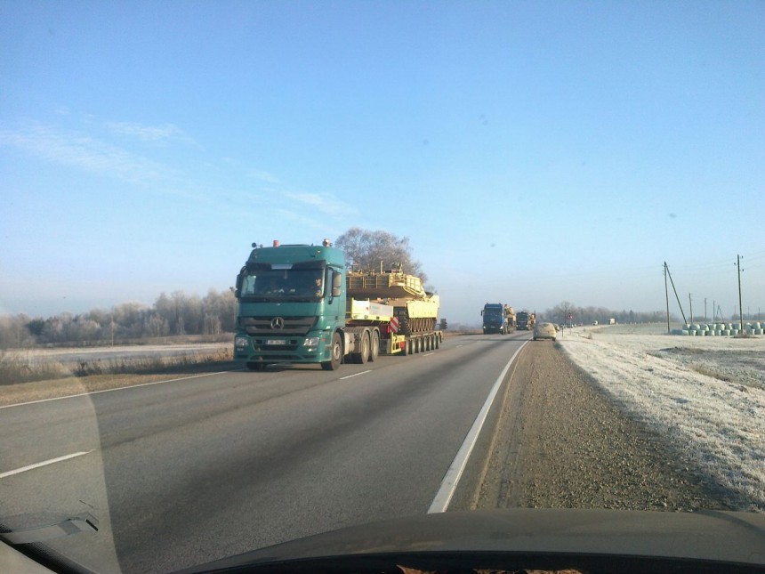 Šodien, 3 decembrī nra.lv saņēma kāda vērīga lasītāja bildi, kurā redzams, kā pa Ventspils šoseju kravas mašīnā tiek pārvadāti tanki.