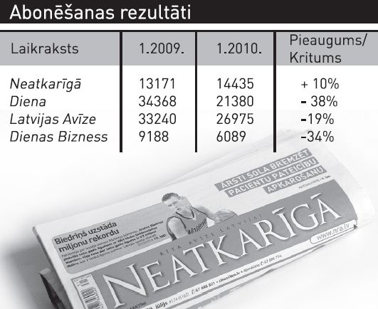 Latvijas Preses izdevēju asociācijas (LPIA) apkopotie dati par preses izdevumu abonēšanu liecina, ka nacionālo laikrakstu vidū, salīdzinot ar 2009. gada janvāri, vienīgi Neatkarīgā 2010. gadu ir uzsākusi ar 10 procentu lielu abonentu skaita pieaugumu.