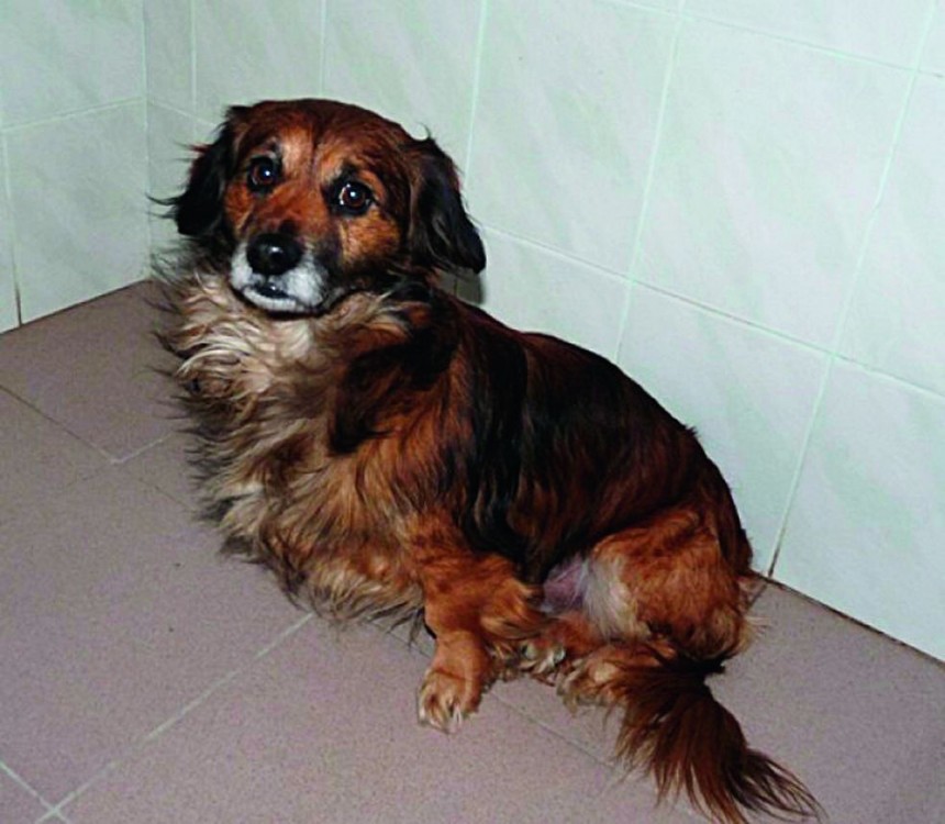 Nelielā auguma suņvīrelis Lācis, kura vecums ir apmēram 5–6 gadi un kurā var saskatīt līdzību ar garspalvaino taksi, palicis bāreņos.
