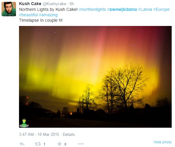Daudzi mikroblogošanas vietnes "Twitter" lietotāji arī nofotografējuši krāšņo dabas parādību un piedāvā fantastiskos attēlus aplūkot pārējiem.