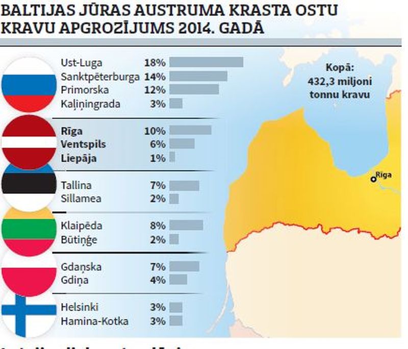 Satiksmes ministrijas sagatavotais dokuments vakar tika cauri pēdējam sietam ceļā uz valdību. Dokumentu izskatīja un kopā ar dažiem vēlējumiem uz valdību palaida Latvijas Ostu, tranzīta un loģistikas padome. Tās priekšsēdētāja vieta pienākas Ministru prezidentam, bet vakar padomes sēdi Laimdotas Straujumas vietā vadīja satiksmes ministrs Anrijs Matīss. Dažu citu ministru vietā padomes sēdē piedalījās viņu pārstāvji. Ar savu klātbūtni sēdi bija pagodinājuši Rīgas, Liepājas un Ventspils brīvostu pārvalžu vadītāji, tāpat arī Liepājas domes priekšsēdētājs Uldis Sesks, Latvijas dzelzceļa prezidents Uģis Magonis un starptautisko autopārvadātāju asociācijas Latvijas auto prezidents Valdis Trēziņš. Satiksmes ministrijas sagatavotajā dokumentā bija iekļauti Latvijas Bankas aprēķini, ka ostu un starptautisko kravu pārvadātāju sniegto pakalpojumu eksports sniedzas uz miljardu eiro gadā, kam lielā mērā jāpateicas par Latvijas ekonomikas un valsts pārvaldes spēju funkcionēt pašreizējā veidā.