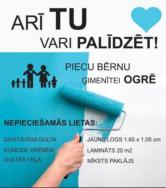 "Mēs - Ogres Bākas jaunieši - remontēsim 3 puišu istabiņu daudzbērnu ģimenītei Ogrē. (Aleksam - 4 gadi, Akselam - 3 gadi un Marekam - 9 mēneši). Istabiņa ir apmēram 20 m2 liela. Tā sociālajā tīklā twitter ziņo brīvprātīgās kustības dalībnieki, lūdzot arī līdzcilvēku palīdzību.