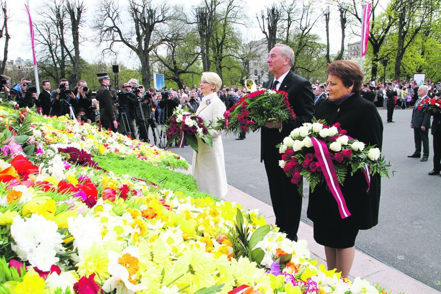 Vakar pie Brīvības pieminekļa pulcējās vairāki simti cilvēku, kuri gan vēroja Latvijas neatkarības atjaunošanas dienai veltīto ziedu nolikšanas ceremoniju, gan ziedus nolika paši. Viņu vidū ļoti gribēja būt nesen no Amerikas dzimtenē atgriezusies latviete Maija DambeKollinsa. Dažādu apstākļu dēļ viņai svētku pasākumi bija jāvēro televizora ekrānā, taču kundze ņipri sacīja, ka svētku pusdienas sev sarūpēs gan. Tie būšot rabarberu cepumi un sēņu pīrāgi. «Latvieši vienmēr svin ar kārumiem. Un Amerikā es tādus pīrāgus dabūt nevarētu, tikai Latvijā,» viņa priecājās. Svētku sajūtu sev radījusi kopā ar draudzeni, arī no Amerikas uz palikšanu atbraukušu tautieti, apmeklējot Rīgas biržu. Citus gadus, kad vien maijā bijusi Latvijā, vienmēr aizgājusi nolikt puķītes pie Brīvības pieminekļa – tas Maijas kundzei bijis nozīmīgs rituāls.