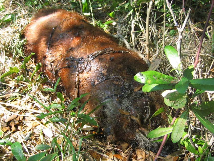 Esiet vērīgi,sēņojot un ogojot: mežā iespējams uziet nepatīkamu pārsteigumu-beigtu meža cūku. Lūdzam ziņot par to PVD http://t.co/ltQPxzgbDD
