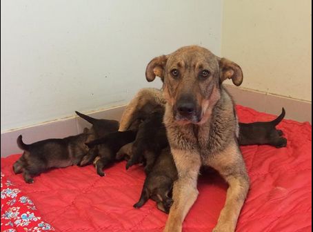 Priecīga ziņa šajā drūmajā stāstā – sunīte ir noķerta un galvenais, ka suņu dāma atpazina savus bērniņus! Kad tika tuvināts pirmais pīkstošais kucēns, sunīte uzreiz laimīgi pietraucās kājās un sāka aktīvi kustināt savu asti. Mazie ir atpazīti un pieņemti,” raksta patversme.