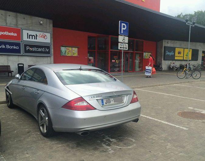Kāds sociālā tīkla facebook lietotājs uzņēmis attēlu, kurā redzams, kā elegants, sudrabains mersedess ir novietots lielveikala invalīdu stāvvietā un bildi papildinājis ar paskaidrojošu ierakstu.