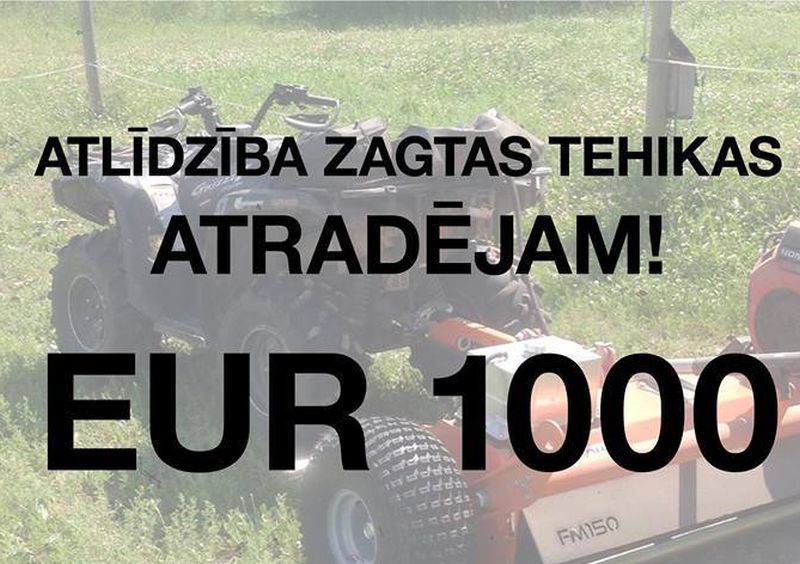Pēc sniegtās informācijas zināms, ka nozagts Yamaha Grizzly 700FR kvadracikls un Chapman FM150 zāles pļāvējs.