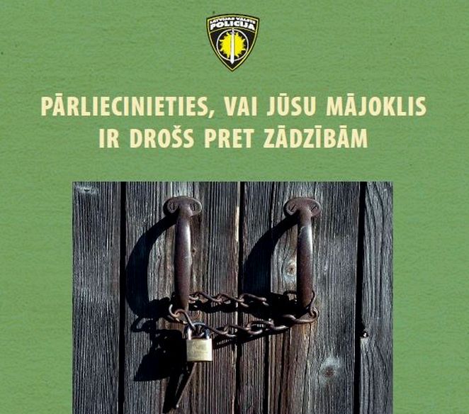Gadījumā, ja pie dzīvesvietas tiek novērota aizdomīga persona vai zādzības mēģinājums, kā arī, ja kāds mēģina uzlaust svešu dzīvokli, nekavējoties jāziņo policijai pa talr. 110.