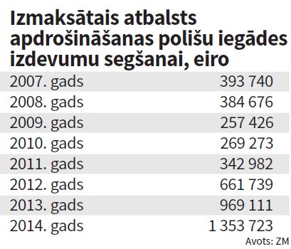 Līdz šim lauksaimniecības apdrošināšanu Latvijā finansēja no valsts subsīdiju līdzekļiem, bet jaunajā plānošanas periodā – 2014.–2020. gadā – to finansēs no Eiropas Savienības (ES) piešķirtās atbalsta naudas augu apdrošināšanai. Kopējais finansējums ražas, dzīvnieku un augu apdrošināšanas atbalstam ir 10 miljoni eiro, no kuriem ES līdzfinansējums no Eiropas Lauksaimniecības fonda lauku attīstībai plānots 68% jeb 6,8 miljoni eiro, bet Latvijas valsts budžeta līdzfinansējums ir 32% jeb 2,3 miljoni eiro. Pasākumu plānots īstenot sešus gadus.