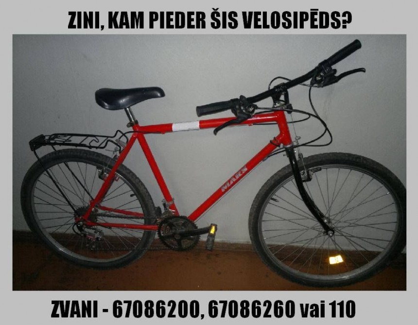 Šī gada 22. augustā Rīgas Centra iecirkņa policisti Rīgā, Dzirnavu ielā atrada sarkanas krāsas velosipēdu „Mountain Mars”.