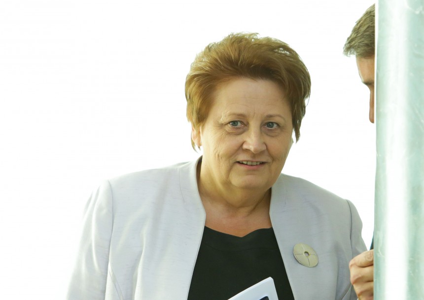 Ministru prezidente Laimdota Straujuma (V) šodien ministriem pasniedza Ministru kabineta Pateicības rakstus saistībā ar veiksmīgi aizvadīto Latvijas prezidentūru Eiropas Savienības Padomē.