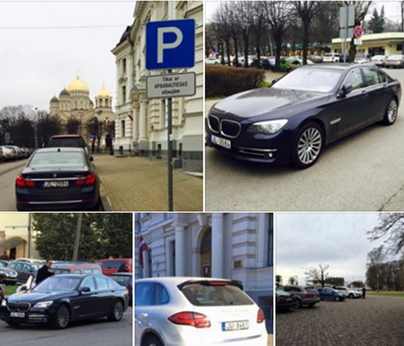 “Šajos foto redzamais BMW pieder Aivaram Blūmiņam. Tas šobrīd stāv pie tiesas ēkas. Aivars Blūmiņš arī reģistrēts kā Zolitūdes Maximas lietas atbildētāja Homburg Zolitūde pārstāvis. Auto logā tiesas caurlaide. Uz darbu ar to brauc Rīgas apgabaltiesas Civillietu tiesu kolēģijas priekšsēdētāja Līga Blūmiņa - tiešā priekšniece tiesnesei, kas skata Zolitūdes Maximas lietu. Ar šo pašu BMW uz citām tiesas sēdēm Zolitūdes Maximas lietā ir braucis Homburg Zolitūde pārstāvis Lauris Rasnačs, tāpat kā ar balto Porsche, ar kuru pirms tam tā pati Līga Blūmiņa ieradās darbā. Porsche pieder advokātu birojam, kura partneri ir Aivars Blūmiņš un Lauris Rasnačs. Kā Jums šķiet, vai šeit ir interešu konflikts? Pareizi, protams, nav. Bangaloras principi pārkāpti? Nu ko, Jūs,” raksta A. Gobzem un attēlu papildinājis ar attēlu, kurā redzamas viņa pieminētās automašīnas.