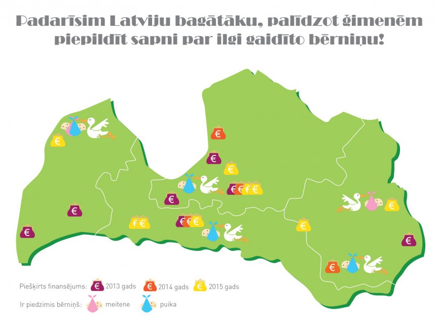 2015. gada decembrī divas ģimenes – no Daugavpils un Ventspils -, kurām neauglības ārstēšanas kampaņas ietvaros tika piešķirts finansējums pilnīgi apmaksātajai medicīniskās apaugļošanas procedūrai, sagaidījušas savus mazuļus.