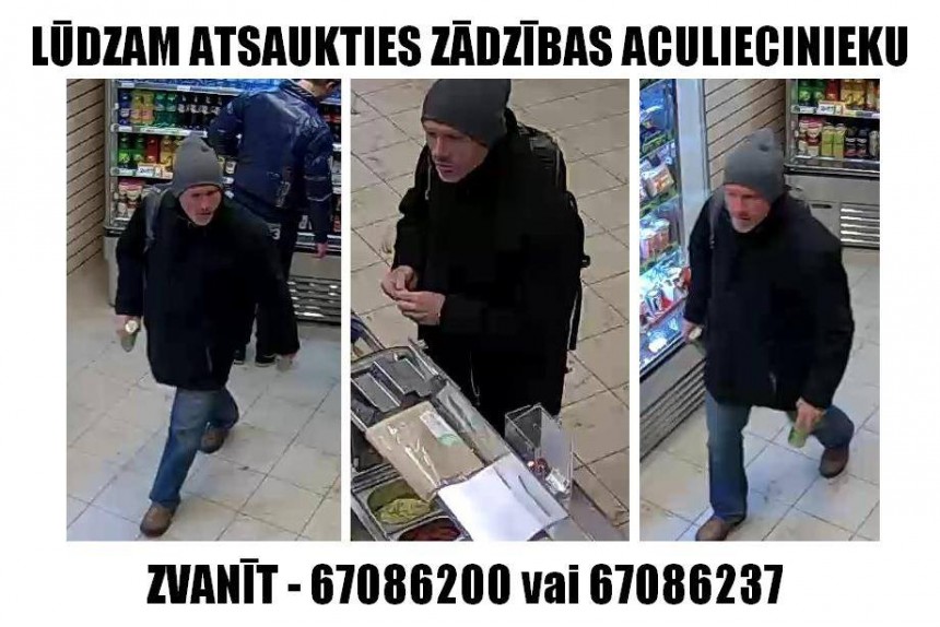 Lai sniegtu izmeklēšanai nepieciešamo informāciju, policija lūdz atsaukties attēlā redzamo vīrieti, kurš bijis notikušās zādzības aculiecinieks. Aculiecinieku aicinām atsaukties, zvanot uz tālruņa numuriem 67086200 vai 67086237.