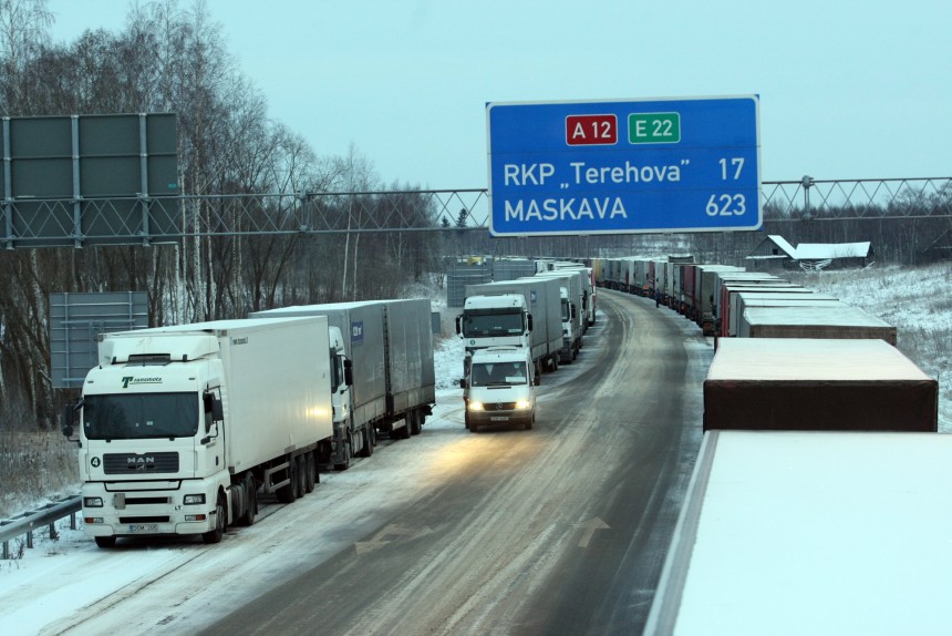 Terehovas robežkontroles punktā rindā gaida 580 automašīnas, un prognozētais laiks, kas automašīnām jāpavada līdz robežas šķērsošanai, ir 58 stundas.