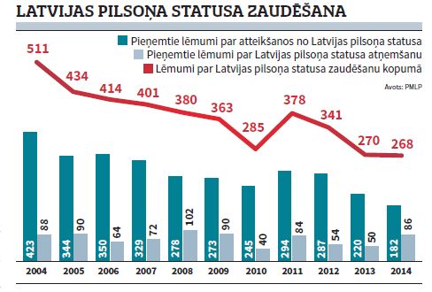 Pilsonības un migrācijas lietu pārvaldē (PMLP) netiek apkopota informācija par to, kāpēc cilvēki atsakās no Latvijas pilsonības. Normatīvie akti neparedz pienākumu norādīt atteikšanās iemeslu. Pēdējo dažu gadu laikā Latvijas pilsoņa statusu visvairāk zaudēja 2011. gadā – 378 personas, savukārt 2013. un 2014. gadā šādu personu skaits tikpat kā nemainījās un bija ap 270.