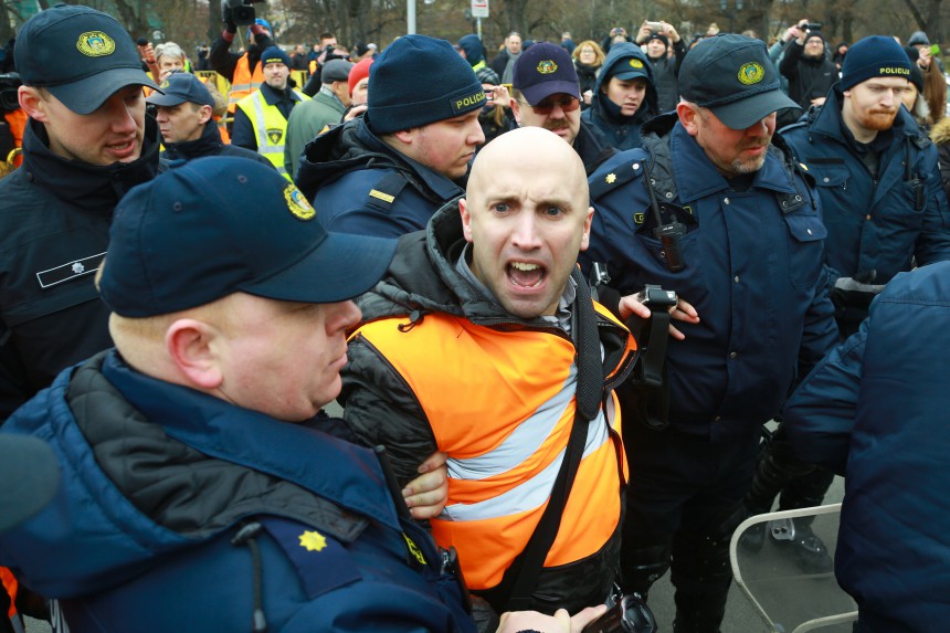 Jau ziņots - Latvijā arestēts prokremliskais britu “žurnālists”, kurš traucējis sabiedriskajai kārtībai un jau pašā sākumā centies provocēt un konfrontēt 16. marta leģionāru gājienu.