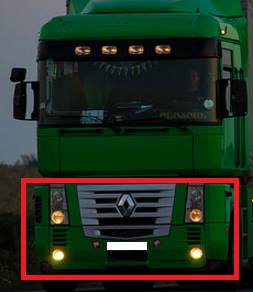 Gaiši zaļš vilcējs (atceros tās sudrabotās redeles un gaismas gar sāniem, un rokoties pa internetu uzgāju šo Renault Magnum, sk.attēlā) ar tumši zaļu piekabi. Iespējams, ka piekabe jau varētu būt nomainīta, bet varbūt nē.