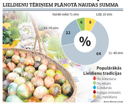Pagājušajā gadā divu nedēļu laikā – starp Rietumu kristiešu un pareizticīgo Lieldienām – Maxima Latvija veikalos tika pārdoti 6,8 miljoni olu. Z. Kaktiņa uzsvēra, ka pagaidām grūti prognozēt, cik daudz olu šogad svētkos iedzīvotāji iegādāsies, jo šogad kristiešu un pareizticīgo Lieldienas šķir vesels mēnesis. «Tādējādi prognozējam, ka būs divi Lieldienu iepirkšanās posmi – viens jau šīs nedēļas izskaņā, bet otrs – pirms 1. maija, kad Lieldienas svinēs pareizticīgie,» sacīja Z. Kaktiņa.