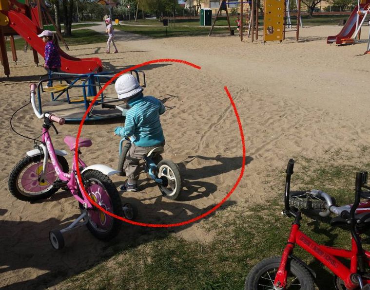 "Vakar bērnu rotaļu laukumā, kurš atrodās Laumas rajonā starp Stārķu, Riņķu un Ventspils ielām, es ar dēliem ierados pievakarē. Jaunàāis dēls uz rotaļām vēlējās doties ar savu mīļāko mantu - bezpedāļu ritenīti. Protams, kamēr mazais kāpelēja pa slidkalniņiem un šūpojās šūpolēs, ritenīti nolikām aiz soliņiem, "stāsta māmiņa. "Kad pienāca laiks doties mājās, taisnā ceļā gājām uz auto. Visi kā viens aizmirsām, ka zālē guļ Olivera iemīļotais transporta līdzeklis. Šorīt, neko sliktu nenojauzdama, veru vaļā auto bagažnieku, lai izņemtu ritenīti un HOPS! Nav! Tikai tad attapos! Ai, ai, ai! Aizvedam lielo brāli uz dārziņu un taisnā ceļā dodamies uz laukumiņu. Maziņš, bet tomēr cerību stariņš bija. Protams, ritenītis tur vairs nebija atrodams! Atkal iemirdzās cerību stariņš, ka to, iespējams, paņēma godprātīgas rokas, lai atdotu atradumu īpašniekam, kad tas atradīsies. Lūdzu, atdodiet mums ritenīti! Būsim ļoti pateicīgi un uzdāvināsim jums lielu šokolādi par to!