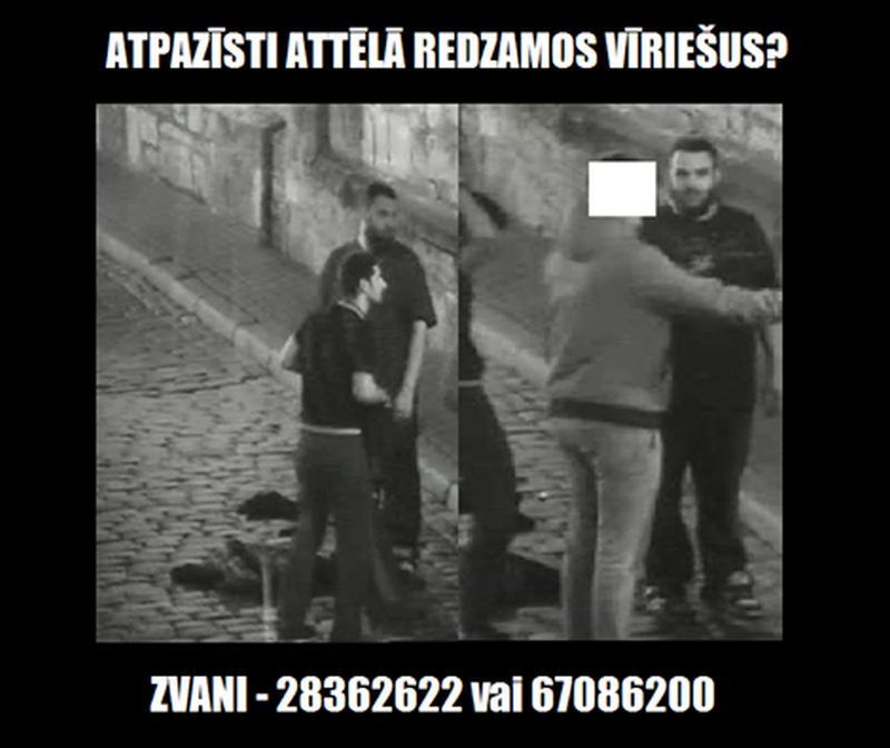 Valsts policija lūdz atsaukties ikvienu, kurš atpazīst attēlā redzamos vīriešus, vai zina viņu iespējamo atrašanās vietu, zvanot uz tālruņa numuriem 28362622 vai 67086200.