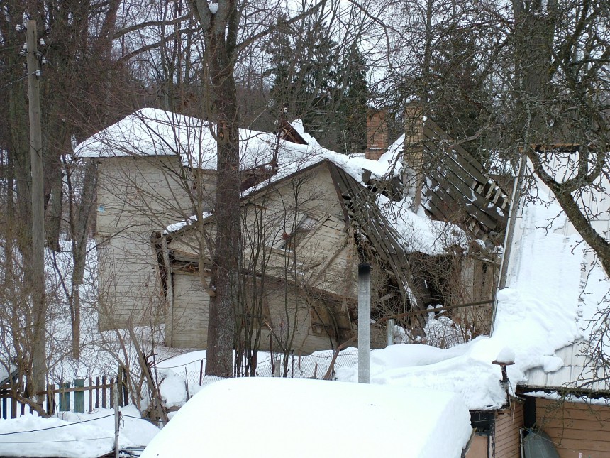 Trešdien smagās sniega segas dēļ sabrukusi Jūrmalas tehniskās jaunrades skolas saimniecības ēka Dubultos, Slokas ielā.