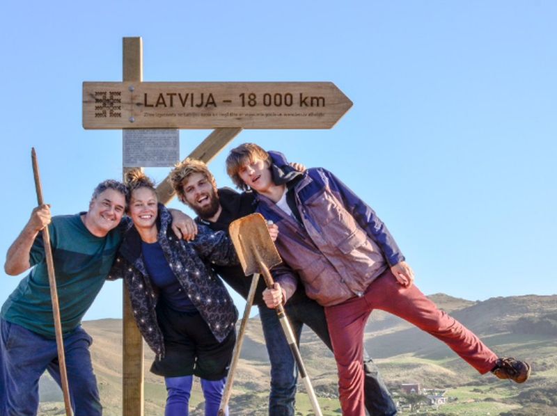 Jau ziņots, ka trīs latvieši - Laura, Ivars un Dainis teju divus gadus pavadījuši ceļojot pāri Āzijas kontinentam, lai uzstādītu Pītas salā Jaunzēlandē ceļa norādi uz Latviju.