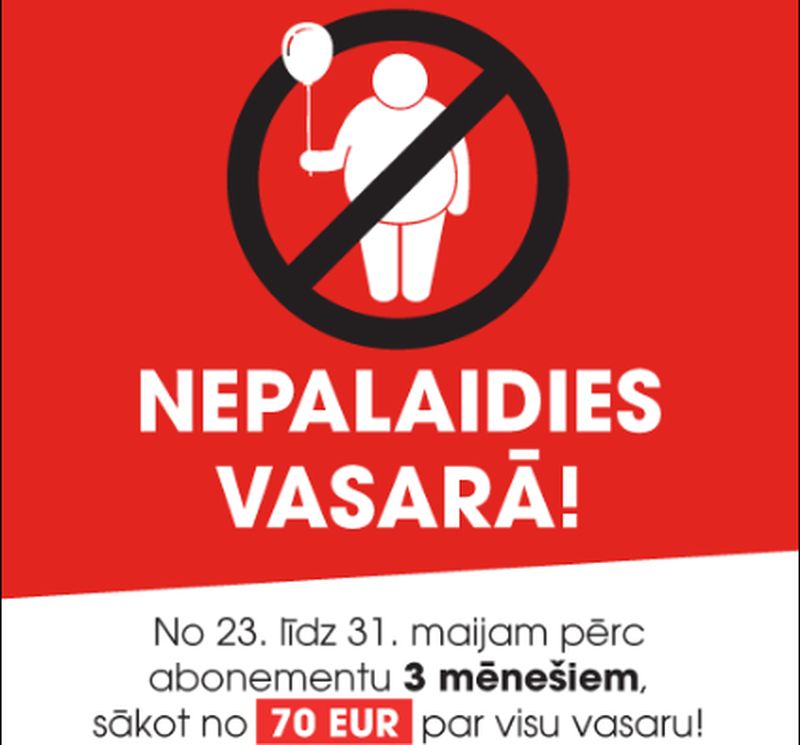 Reklāmā redzams apaļīgs cilvēks, kurš nosvītrots un bilde papildināta ar informāciju: “Nepalaidies vasarā” un kluba cenu piedāvājumu.