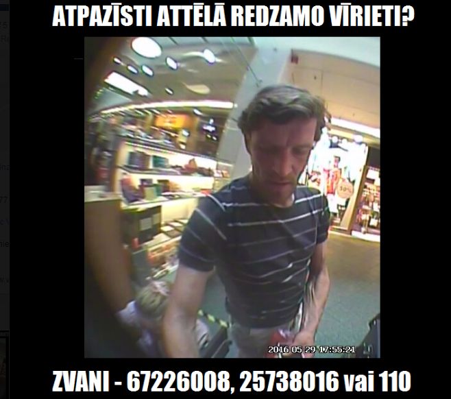 Veikala videonovērošanas kameras fiksējušas vīrieti, kurš varētu būt izdarījis zādzību. Valsts policija lūdz atsaukties ikvienu, kurš ir redzējis vai, kuram ir jebkāda informācija par attēlā redzamā vīrieša atrašanās vietu, zvanot uz tālruņa numuru 67226008, 25738016 vai 110.