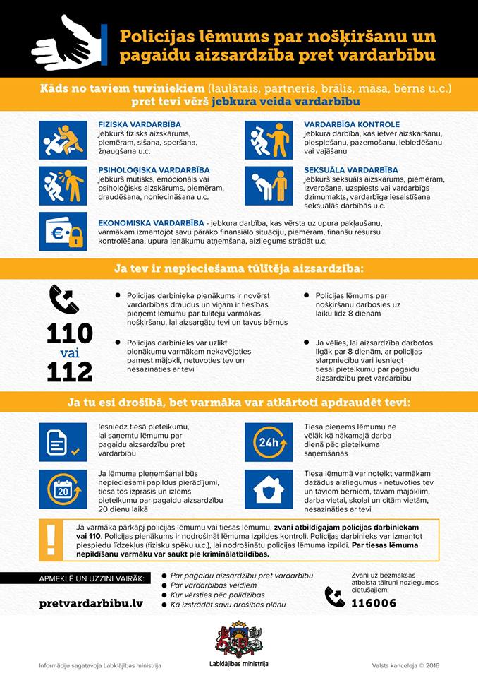 2015.gadā tikai 626 vardarbības upuri ģimenēs izmantojuši savas tiesības uz pagaidu aizsardzību pret vardarbību un lūguši tiesībsargājošām iestādēm nošķirt varmāku. No tiem 72 gadījumos tika pieņemti Valsts policijas lēmumi, kuru ilgums ir uz laiku līdz astoņām dienām, pārējos 554 gadījumos aizsardzību pret vardarbīgo ģimenes locekli noteikusi tiesa.