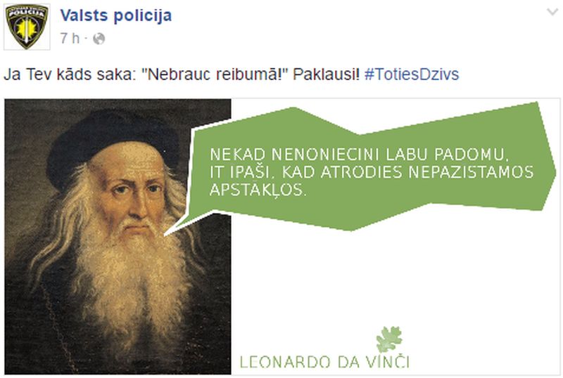 “Ja Tev kāds saka: "Nebrauc reibumā!" Paklausi!” rakstīts Valsts policijas facebook kontā. Tāpat policisti sveic visus līgotājus svētkos.