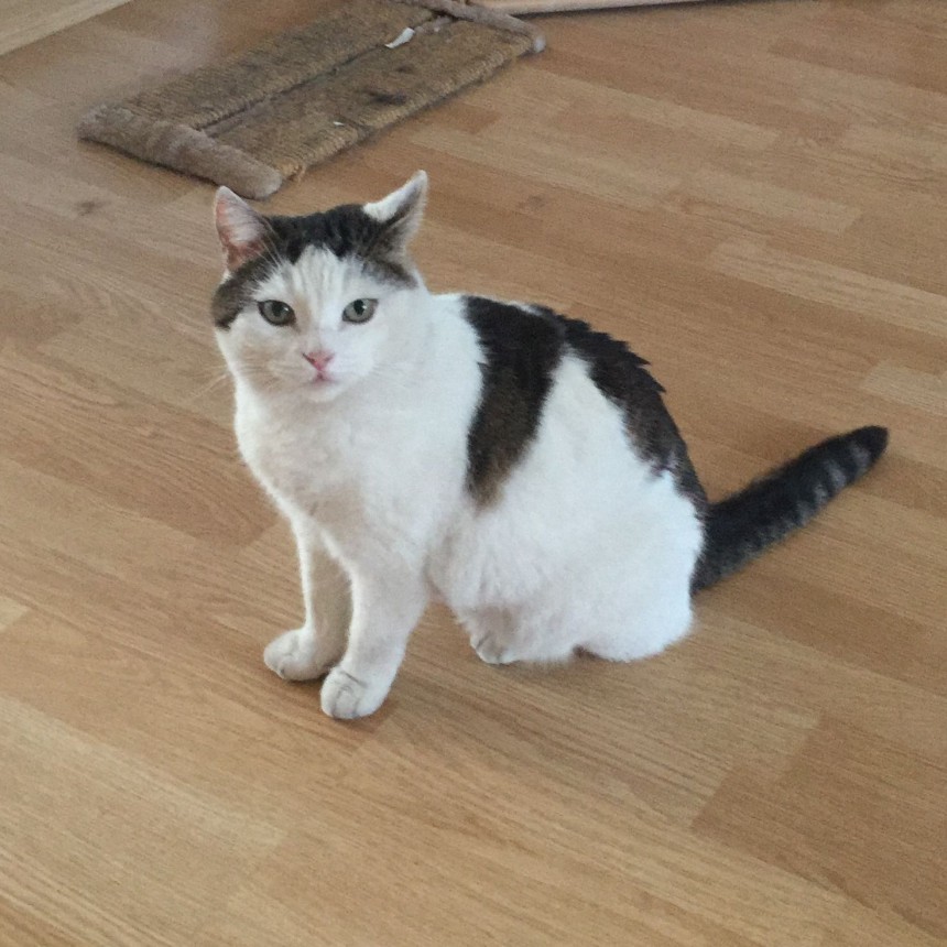 Melnbaltā Lora - neatkarīga, piesardzīga, tramīga, viegli aizvainojama, bet ļoti mīļa un tīrīga septiņu gadu veca kaķenīte. Atrasta viena mēneša vecumā Rumbulas dārziņos, raidot SOS signālus zem būdiņas sliekšņa. Trīs dienas barota un, nesagaidot kaķu mammas parādīšanos, paņemta ģimenē.