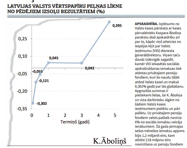 Otrkārt, apšaubāms ir pensiju fondu ienesīgums un vērstpapīros ieguldīto uzkrājumu reālā vērtība laikā, kad pat ne izcili uzticamā Latvijas valsts atļaujas pārdot parādzīmes ar negatīvām likmēm, t.i., iekasēt naudu no valsts parādzīmju pircējiem par viņu naudas glabāšanu. Kur tādā gadījumā pensiju fondi iegulda naudu, lai varētu nopelnīt līdz gandrīz 5% gadā, kā jau norādītajā adresē manapensija.lv vakar atskaitījās ne viena vien pensiju plāna pārvaldnieki? Kāpēc turpat neiegulda visi tie, kuri piemaksā Latvijai un citiem kredītņēmējiem par naudas izmantošanu? Kāpēc lai tagad kāds vispār maksātu pat 1% gadā par naudu, un kādam nejēgam jābūt, lai maksātu 5%? Vai tādi nejēgas spēs vispār kaut ko atmaksāt pensiju fondiem, nevis pazust ar visu naudu?