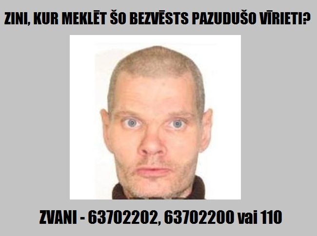 Bezvēsts pazudušais Aldis Ozoliņš, kurš bija izgājis 18.jūlijā no Sociālās mājas Dobelē, šorīt ir atgriezies minētajā adresē. Sakarā ar to tiek pārtraukta viņa meklēšana.