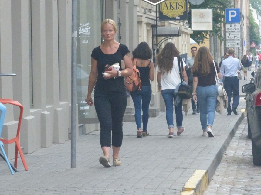 »Vakara Ziņas« novēroja, ka Binnija, lai apdarītu ikdienas pienākumus, savu piecus mēnešus veco mazuli, kas jau krietni apvēlies un omulīgi smaida, uztic pieskatīt kolēģēm.