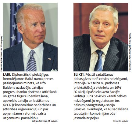 LG lielo akcionāru situācija ir sarežģītāka, jo šajā gadījumā uzņēmums jāsadala reāli un viņiem liegta iespēja pārvaldīt Conexus Baltic Grid apmēram tādā veidā, kā Gazprom izmanto Itera. Latvijas valsts, protams, neveiks Inčukalna krātuves nacionalizāciju pēc 1940. gada parauga, bet Inčukalna pazemei tomēr jānonāk pie īpašniekiem, kas patiešām nav Gazprom. Tāda, lūk, ir ASV bīdīta vienošanās ar Eiropas Savienību un Krieviju par to, kā juridiski un tehniski nodrošināt ASV un tās sabiedroto dabasgāzes nonākšanu līdz Latvijai, kas vēsturiski izmanto tikai Gazprom preci. Par savu iekļaušanos tādā procesā Latvija nupat kā saņēma ASV viceprezidenta Džo Baidena uzslavu un Itera Latvija prezidenta Jura Savicka brīdinājumu par gāzes cenu piea ugumu.