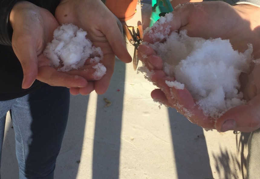 Twitter lietotāja Elizabete raksta: "Kaķīškalnā pimais sniegs" klāt ir arī pievienots apliecinošs foto.