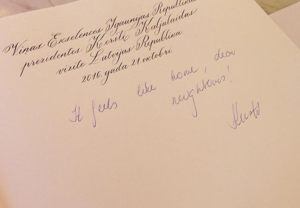 Viesojoties Latvijas Republikas Saeimā, kaimiņvalsts prezdente parakstījās arī Saeimas viesu grāmatā, ierakstot: "Šeit ir sajūtas kā mājās, dārgie kaimiņi."