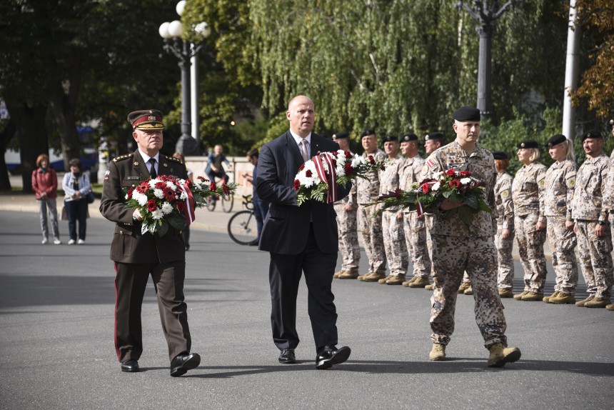 "Es pateicos komandierim par līdzšinējo devumu mūsu bruņotajiem spēkiem un ceru, ka ģenerālleitnants arī nākotnē neliegs iespēju dalīties ar savām zināšanām, kad vien tās būs nepieciešamas mūsu karavīriem un visai valsts aizsardzības jomai," rezumēja ministrs.