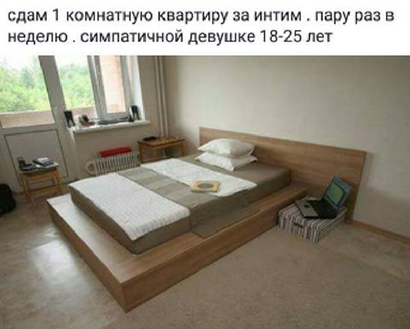 Kā ierasts, tad pie šāda veida sludinājumiem tiek publicēti attēli ar to, kā mājvieta izskatās, cik izmaksās tās īre, un kam tajā vispār piedāvā dzīvot. Šoreiz domubiedru grupas apmeklētājus pārsteidzis kāda kunga ieraksts, kurā viņš piedāvā iespēju izīrēt mājvietu aptuveni 18-25 gadus vecām meitenēm. Visdīvainākais ir tas, ka viņš norāda, ka norēķināties par dzīvokli būs nepieciešams pāris reizes nedēļā ar intīmu pakalpojumu sniegšanu.