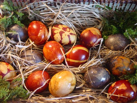 Sīpolu mizās krāsotas olas būs dzeltenas vai brūnas, bet brūnums kļūs vēl spilgtāks, ja pie sīpolu mizām pieliek kafijas biezumus, savukārt alkšņu mizas dod brūni iesarkanu krāsu, bērzu lapas, mētras, sūnas dod dzelteni zaļu, bet rudzu zāle - koši zaļu krāsu.