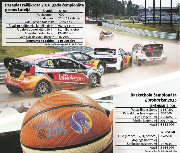 Arī pērn pasaules autorallija čempionāta posms, kas pirmo reizi tika rīkots Biķernieku sporta trasē Rīgā, izpelnījies lielu interesi - to apmeklējuši vairāk nekā 4000 ārzemju sporta fanu, bet kopumā trasē notiekošo vērojuši ap 20 000 cilvēku. Aptaujas liecinājušas, ka ārvalstu dalībnieki vien iztērējuši vairāk nekā pusmiljonu eiro, apmeklētāji - ap miljonu eiro, bet kopumā ārzemnieku, kuri šeit pavadījuši vidēji trīs dienas, pienesums nodokļu veidā sasniedzis 340 000 eiro, akcentēja šā pasākuma rīkotājs Raimonds Strokšs. Viņš arī norādīja, ka piedzīvots arī kas unikāls: 200 norvēģu pilota Andreasa Bakerūda fanu nofraktējuši privātu lidmašīnu un atlidojuši uz Latviju. Starp citu, kad čempionāta posms beidzies, Latvijas lidostā uz lidmašīnu reisiem pat bijušas garas rindas, un tajās dienās norīkoti papildu čārterreisi. R. Strokšs palepojās, ka Latvija saņēmusi balvu no čempionāta rīkotājiem - par vislabāk noorganizēto posmu. Tas atzīts arī par pērnā gada lielāko Latvijas sporta notikumu. Arī šogad viens no šo sacensību posmiem no 15. līdz 17. septembrim notiks Latvijā. Tāpat lielāko sporta pasākumu sarakstā ir pasaules motokrosa sacensības, kuras arī tuvākajos gados plānotas Latvijā.