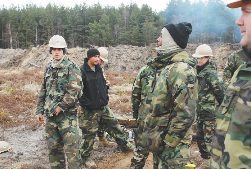 Vakar Neatkarīgajai ierodoties būvobjektā, tikai viens ceļarullis maskēšanās krāsās stumdījās pa noplanēto lauku. Vairākums amerikāņu – skaitā kādi desmit – bija paņēmuši pīppauzi un kurināja ugunskuru. Aiz viņu mugurām visai amizanti izskatījās uzraksts kirilicā "Slava KPSS", kas no krievu karaspēka laikiem saglabājies uz šautuves būceņa. Lēnīgā strādāšana, visticamāk, saistīta ar faktu, ka kļūdaino aprēķinu dēļ aizkavējusies būvatļaujas saņemšana darbiem tieši kāpās. Taču, kā apgalvo Nacionālo bruņoto spēku preses dienests, tagad visas formalitātes esot sakārtotas.